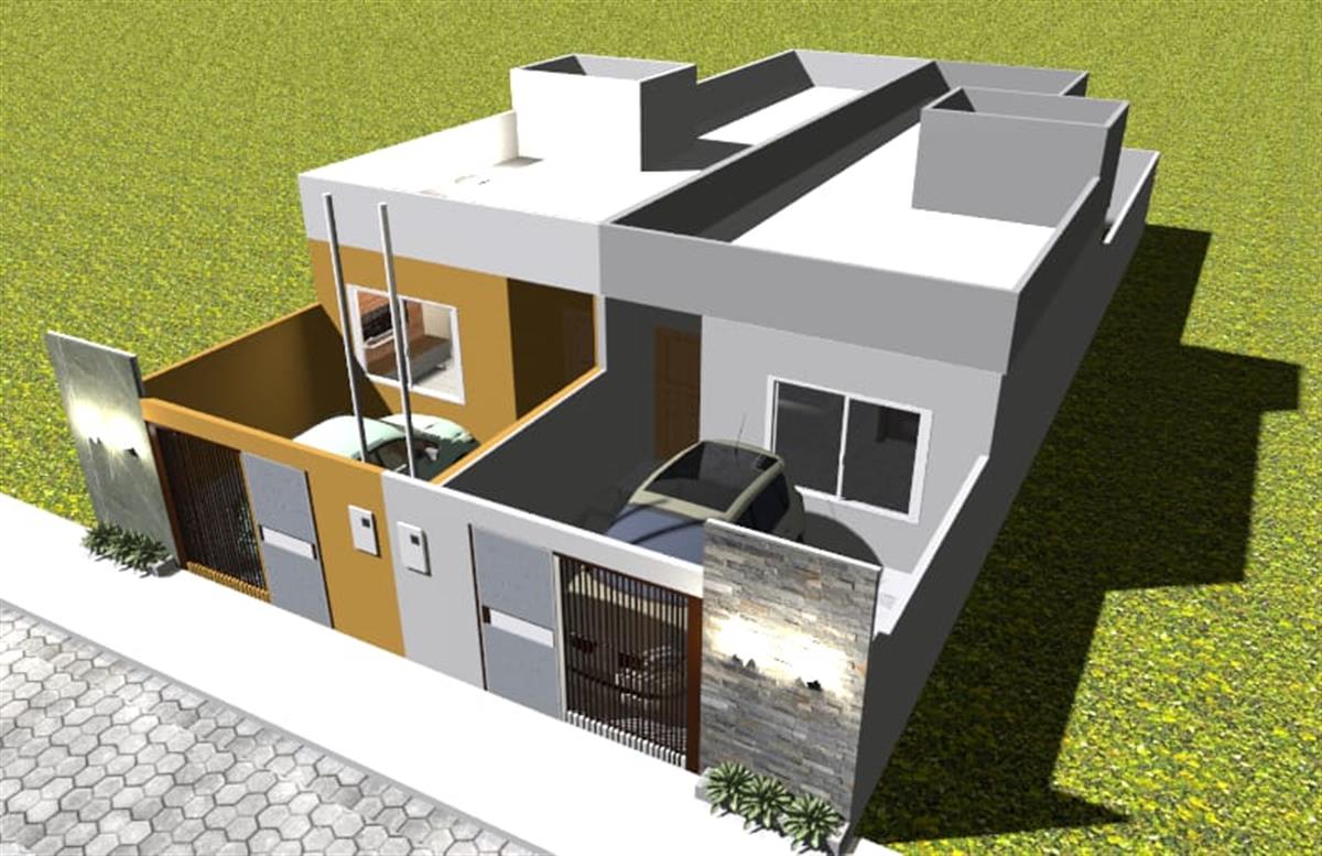 Casa em construção com sala e cozinha americana, 02 dormitorios, banheiro, área de serviço e garagem. Imóvel ideal para financiamento pelo plano Minha Casa Minha Vida.